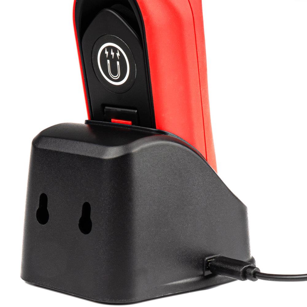 Latarka z mocnym światłem pozwala nawet późnym wieczorem dokonywać potrzebnych napraw. Prezentowana lampa warsztatowa to wysoka jakość i światło LED COB o dużej mocy.