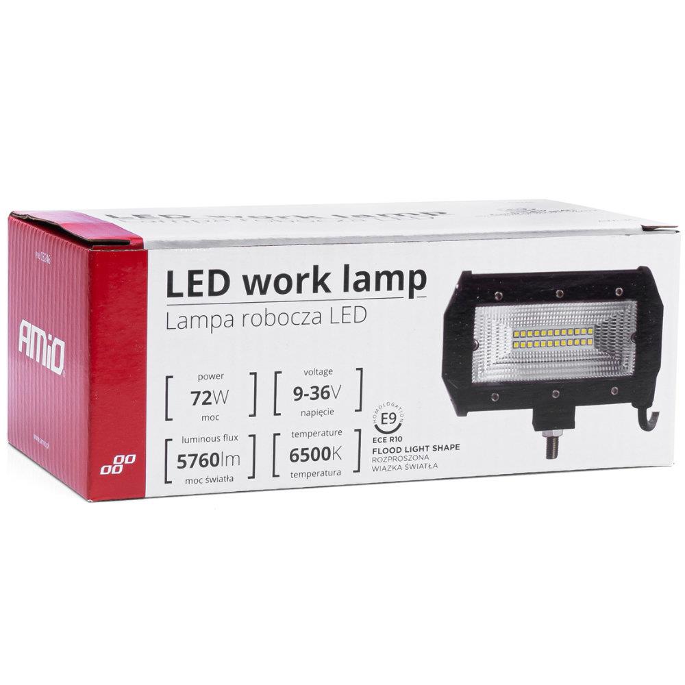 Lampy robocze AMIO dedykowane są przede wszystkim do miejsc, gdzie potrzebne są profesjonalne, intensywne źródła światła zasilane z akumulatorów o napięciu od 9 do 36V. Produkty te mają bardzo szerokie zastosowanie m.in. do pojazdów off-roadowych, ATV i UTV, do pojazdów ratowniczych, rolniczych, samochodowych, helikopterów itp. Lampa dzięki swoim parametrom i dużej mocy światła potrafi zastąpić do 6 standardowych świateł roboczych. Dzięki zastosowaniu technologii LED, lampa charakteryzuje się bardzo dobrym stosunkiem pobranej mocy do ilości wydzielanego światła. Świetnie sprawdzi się również jako dodatkowe oświetlenie samochodu lub łodzi.