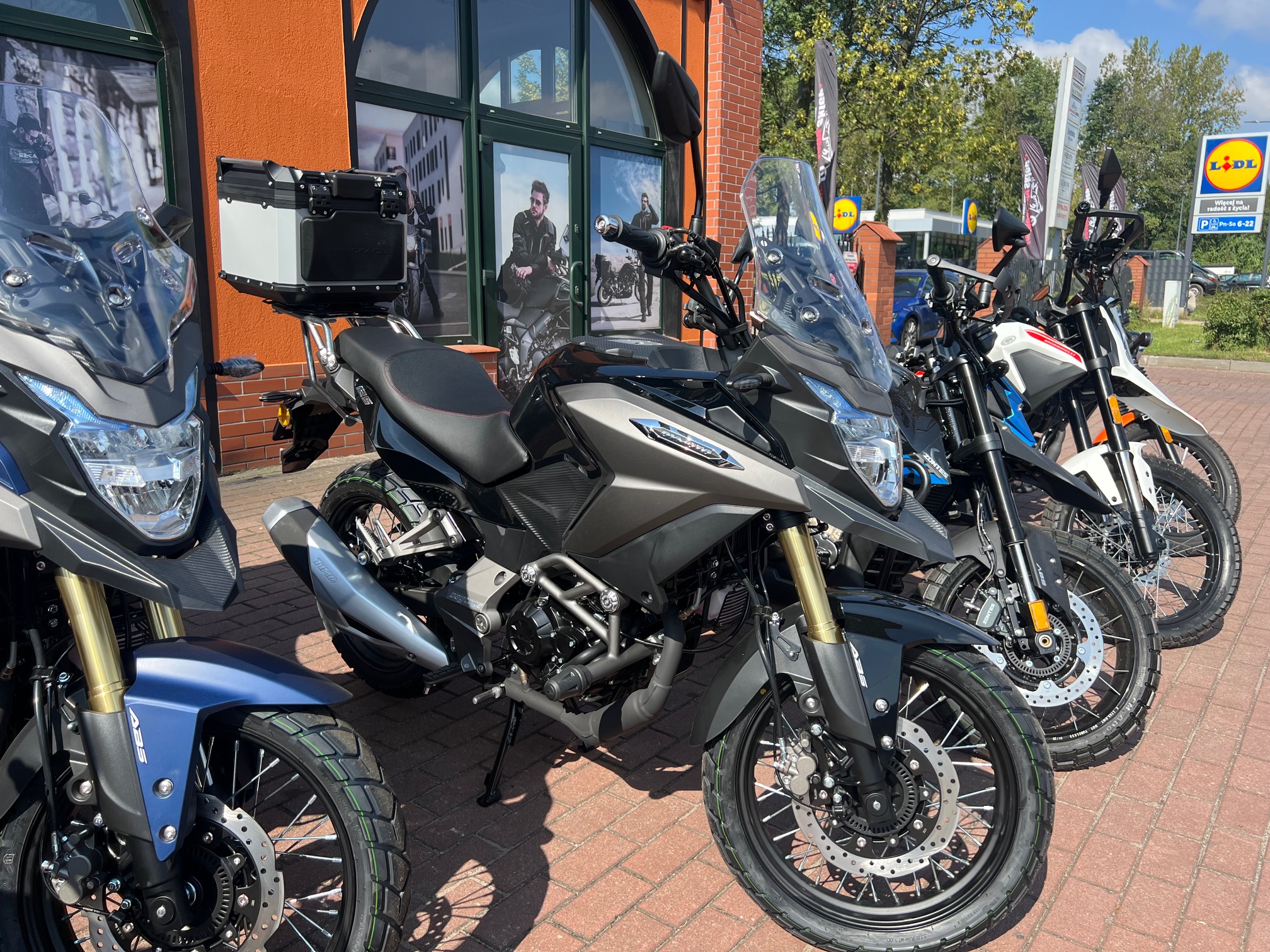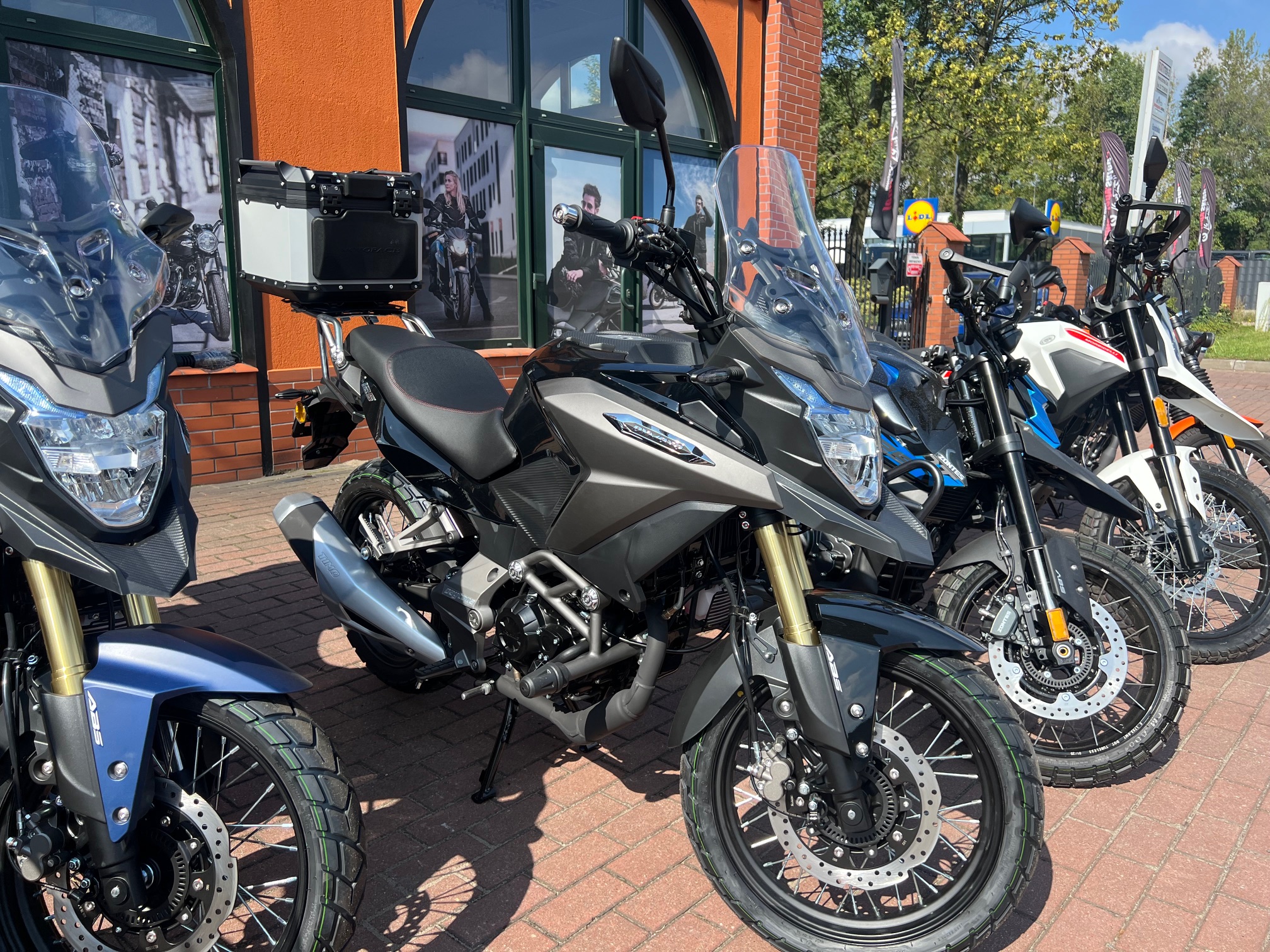 Kufry w motocyklu DYMOTO 125 X są dostępne w pojemnościach, które idealnie sprawdzają się w długich podróżach. Centralny kufer oferuje przestrzeń o pojemności 38 litrów, idealną na większe przedmioty czy dodatkowy bagaż. Zmieścisz w nim również kask integralny. Boczne kufry, każdy o pojemności 30 litrów, zapewniają dodatkowe miejsce na niezbędne rzeczy i są łatwo dostępne podczas postoju. Cały zestaw gwarantuje wystarczającą przestrzeń na bagaż, zachowując przy tym stabilność motocykla oraz wygodę użytkowania.