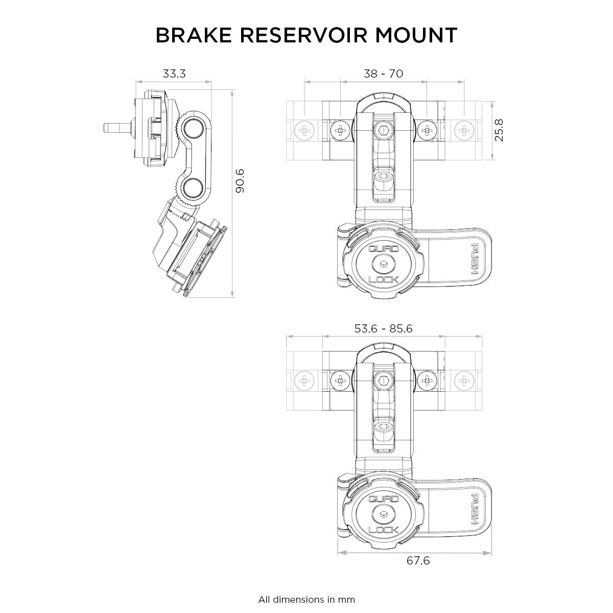 - 1 x Podstawa mocowana na zbiorniczku hamulcowym Quad Lock®