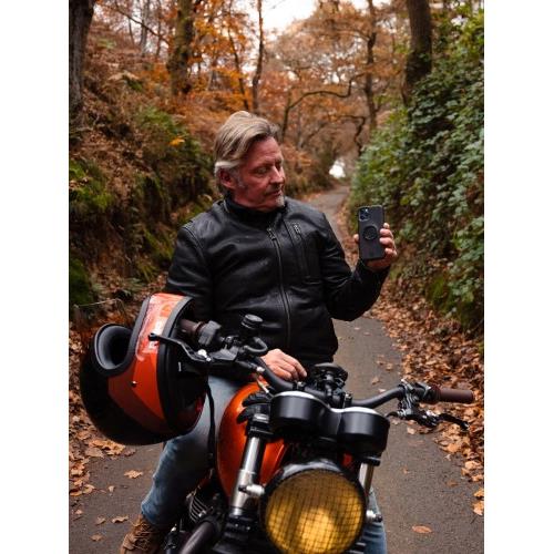 Dzięki naszemu opatentowanemu dwustopniowemu mechanizmowi mocowania możesz mieć pewność, że Twój smartfon pozostanie bezpiecznie zamocowany podczas jazdy, niezależnie od warunków.