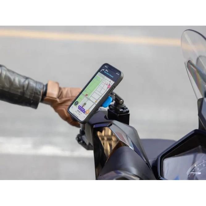 Głowicę wskaźnika można regulować pod kątem, a ramię ma wiele punktów obrotu, co zapewnia swobodę ustawiania smartfona pod optymalnym kątem widzenia, bez zakłócania pracy jakichkolwiek elementów sterujących skutera lub motocykla.