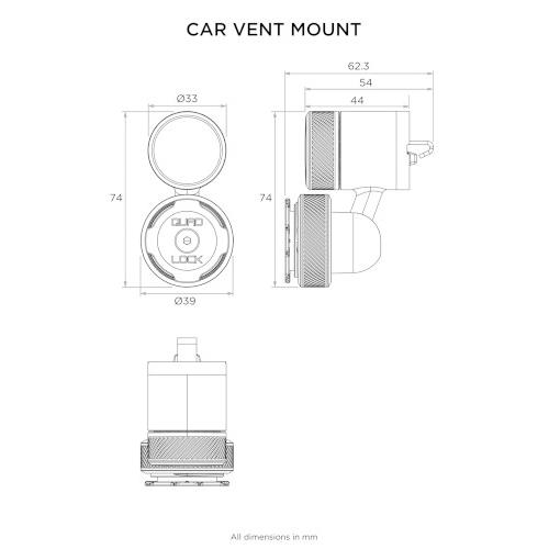Odpowiedni do użytku ze wszystkimi etui Quad Lock® i uniwersalnymi adapterami, uchwyt Quad Lock montowany w kratkę wentylacyjną to bezpieczny sposób na wygodne przymocowanie telefonu do otworów wentylacyjnych w samochodzie.