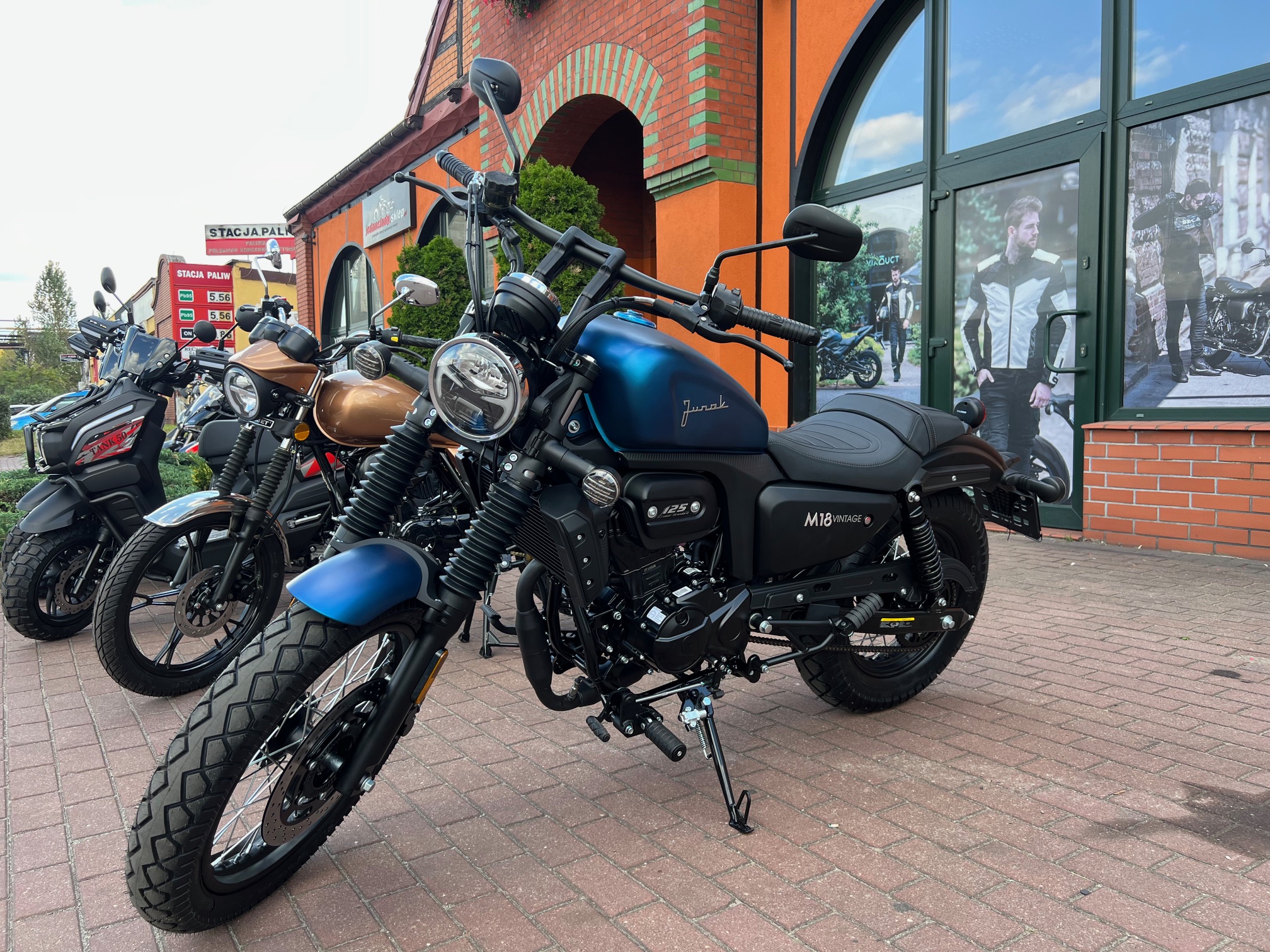 Junak M18 Vintage 125 to motocykl, który śmiało sięga do estetyki klasycznych cruiserów i bobberów, czerpiąc z niej to, co najbardziej charakterystyczne – od nisko poprowadzonej kanapy po eleganckie chromowane detale. Mimo nostalgicznych odniesień, całość prezentuje się jako świeża i nowoczesna interpretacja stylu retro, stworzona z myślą o współczesnych użytkownikach.