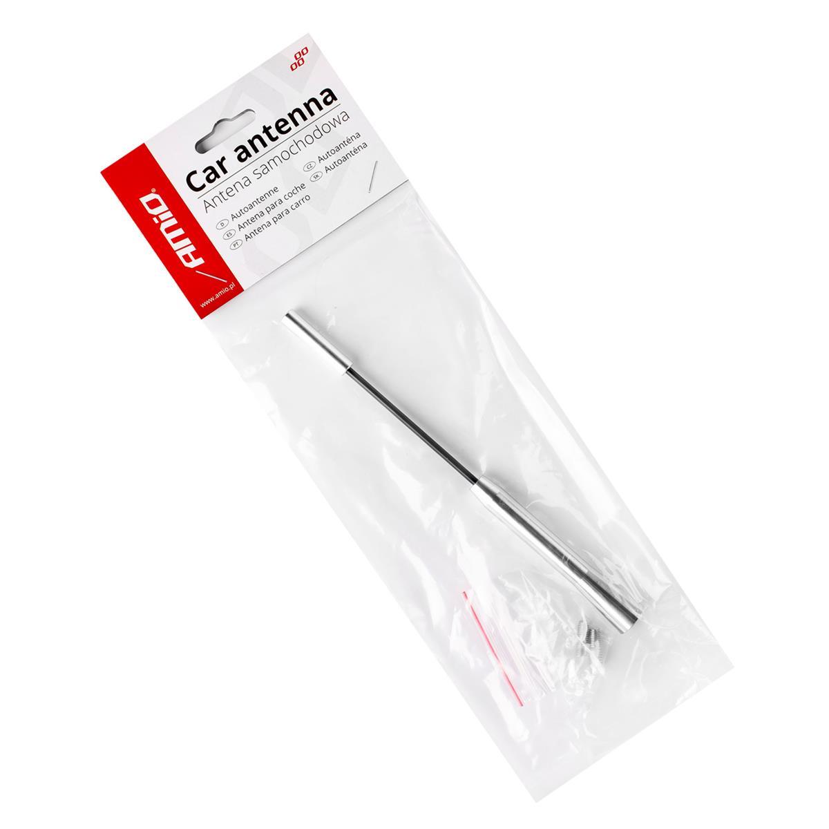 Uniwersalna antena samochodowa. Antena została wykonana z wysokiej jakości materiałów. Zewnętrzna warstwa masztu została powleczona materiałem odpornym na warunki atmosferyczne.