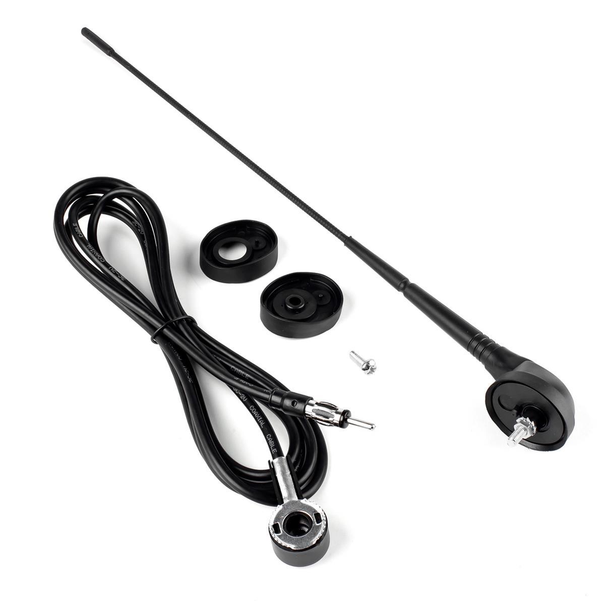 Uniwersalna antena samochodowa. Antena została wykonana z wysokiej jakości materiałów. Zewnętrzna warstwa masztu została powleczona materiałem odpornym na warunki atmosferyczne.