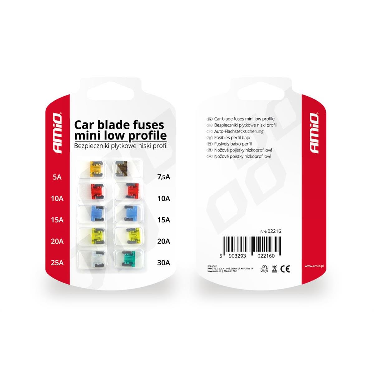 Opis produktu Wysokiej jakości zestaw bezpieczników samochodowych płytkowych typu niski profil chroniący instalacje elektryczne pojazdów przed ich uszkodzeniem.Typ bezpiecznika: płytkowy niski profilZawartość zestawu: 5A, 7.5A, 2x10A, 2x15A, 2x20A, 25A, 30AIlość sztuk w opakowaniu: 10 szt. Karton [szt.]:100/500