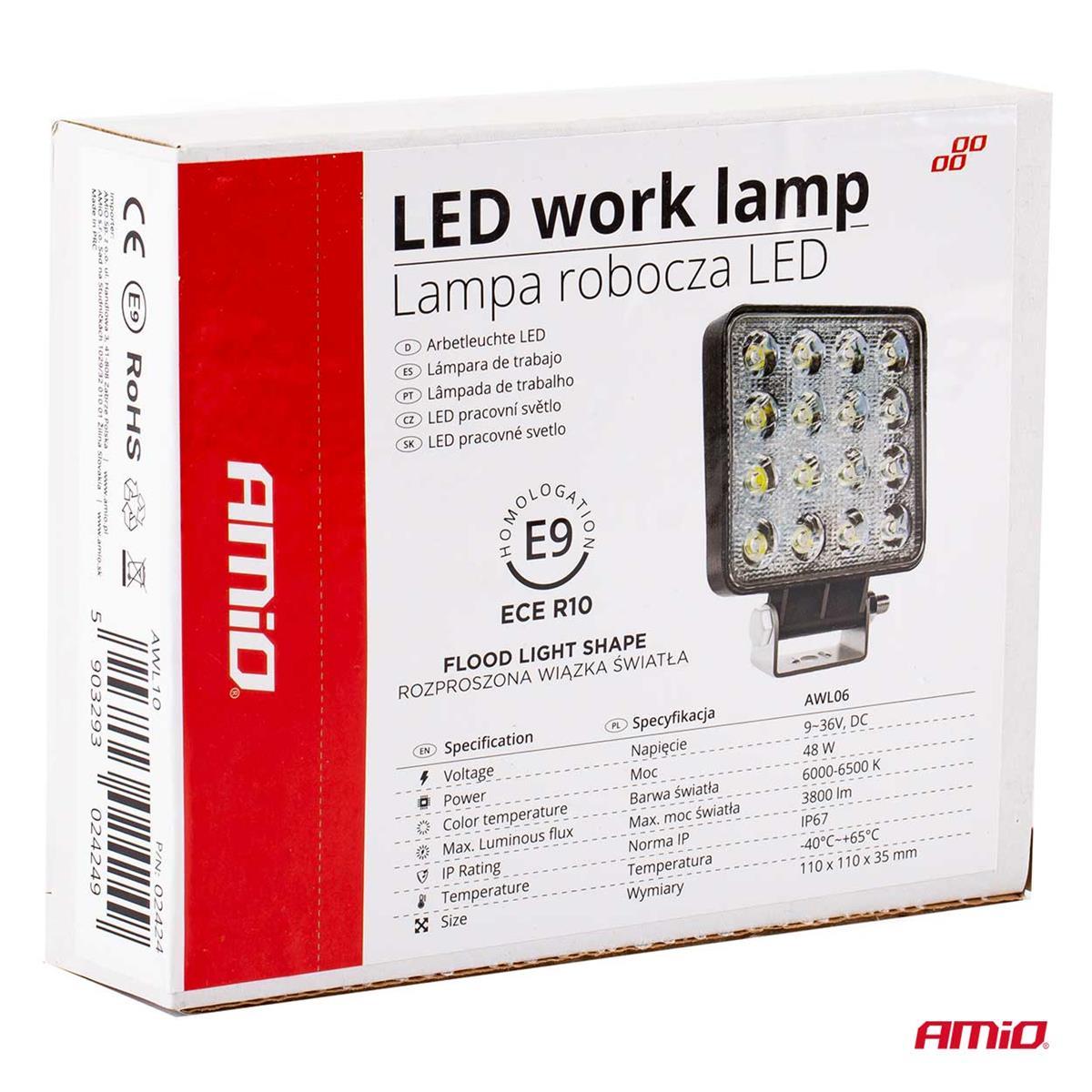 Lampa umieszczona jest w szczelnej obudowie, charakteryzującej się dużą odpornością na wilgoć i wodę, co umożliwia instalację jej zarówno wewnątrz jak i na zewnątrz pomieszczeń, samochodów, łodzi, itp. Ta lampa robocza może być montowana w pojazdach z instalacją elektryczną od 9V do 36V.
