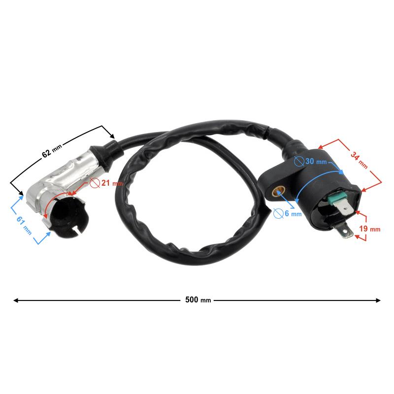 długość całkowita: 500 mm średnica wylotu fajki: 16,5 mm średnica otworu mocującego: 6 mm ilość pinów: 2 odległość między pinami: 19 mm