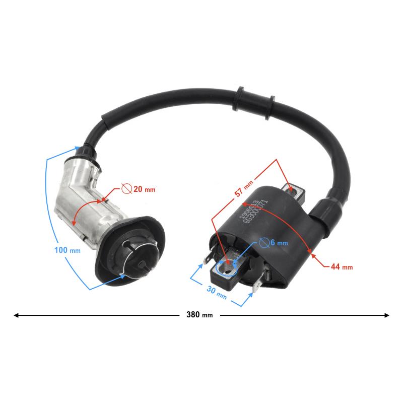długość całkowita: 380 mm średnica wylotu fajki: 13 mm średnica otworu mocującego: 6 mm rozstaw między otworami mocującymi: 57 mm ilość pinów: 2 odległość między pinami: 30 mm