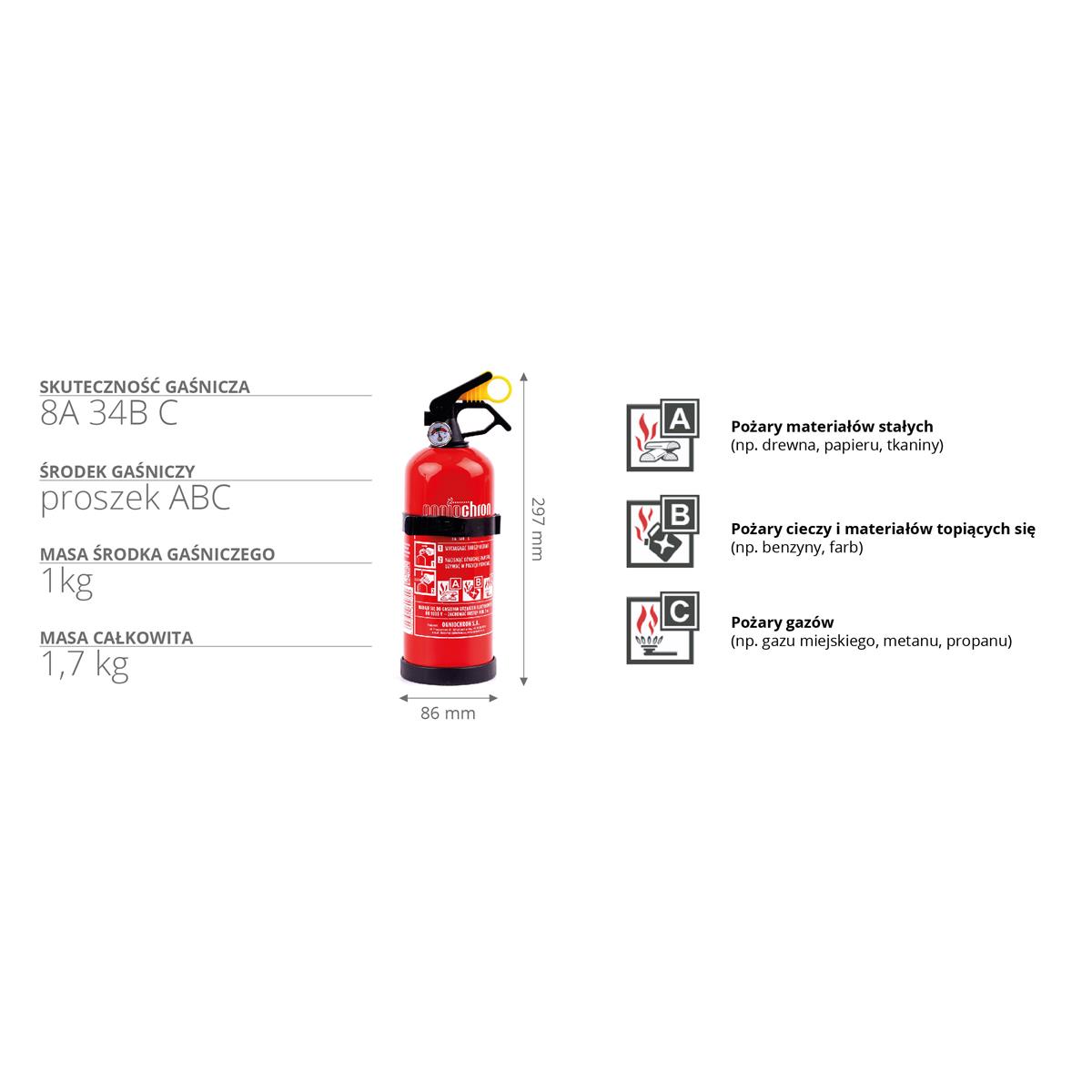 - w komplecie uchwyt, dzięki któremu można zamocować gaśnicę na ścianie