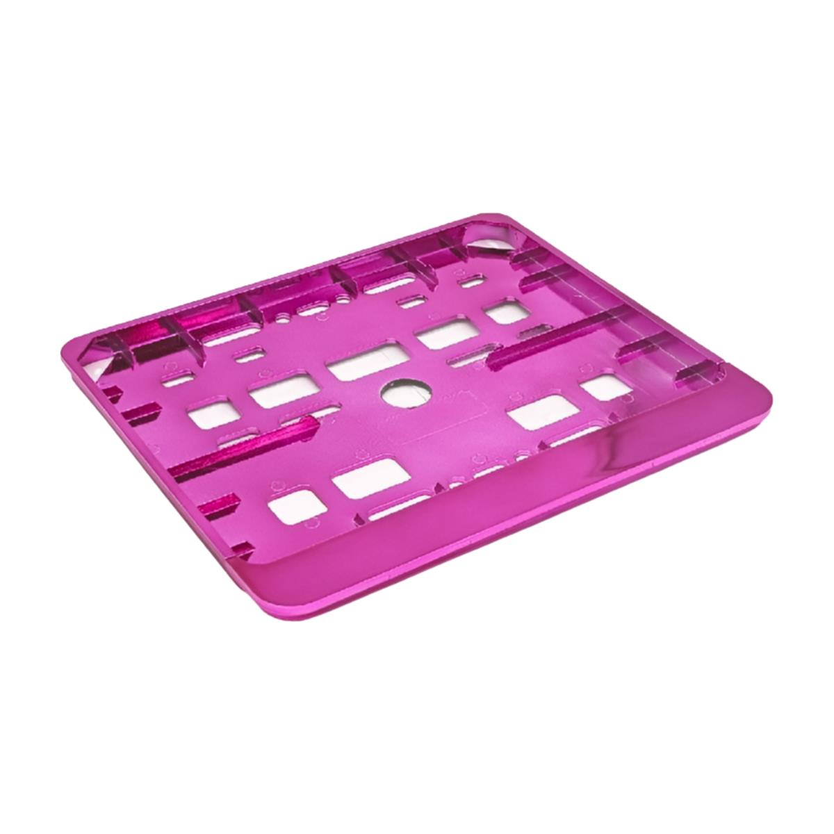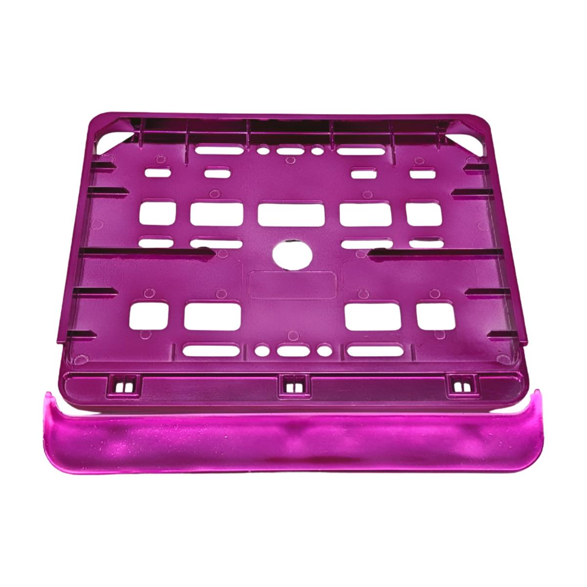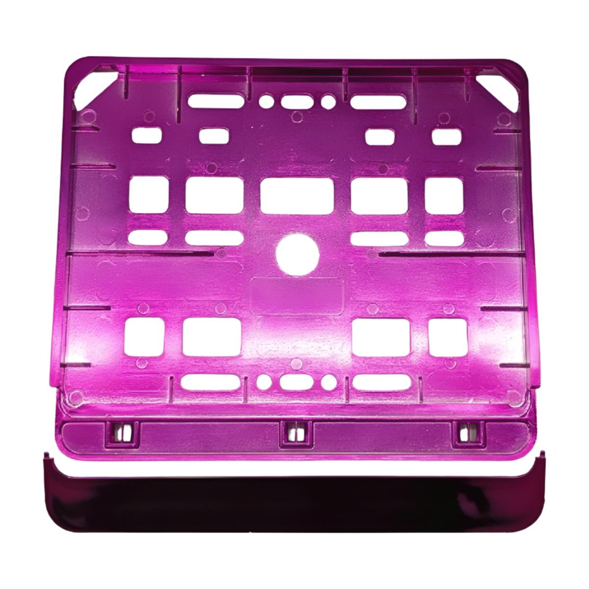 Ramka została wykonana z trwałego tworzywa sztucznego, pokrytego metalizowaną powłoką w kolorze różowym, co nadaje jej nowoczesny wygląd i podkreśla styl motocykla. Dzięki fabrycznie wykonanym otworom montażowym, instalacja ramki jest szybka i bezproblemowa.