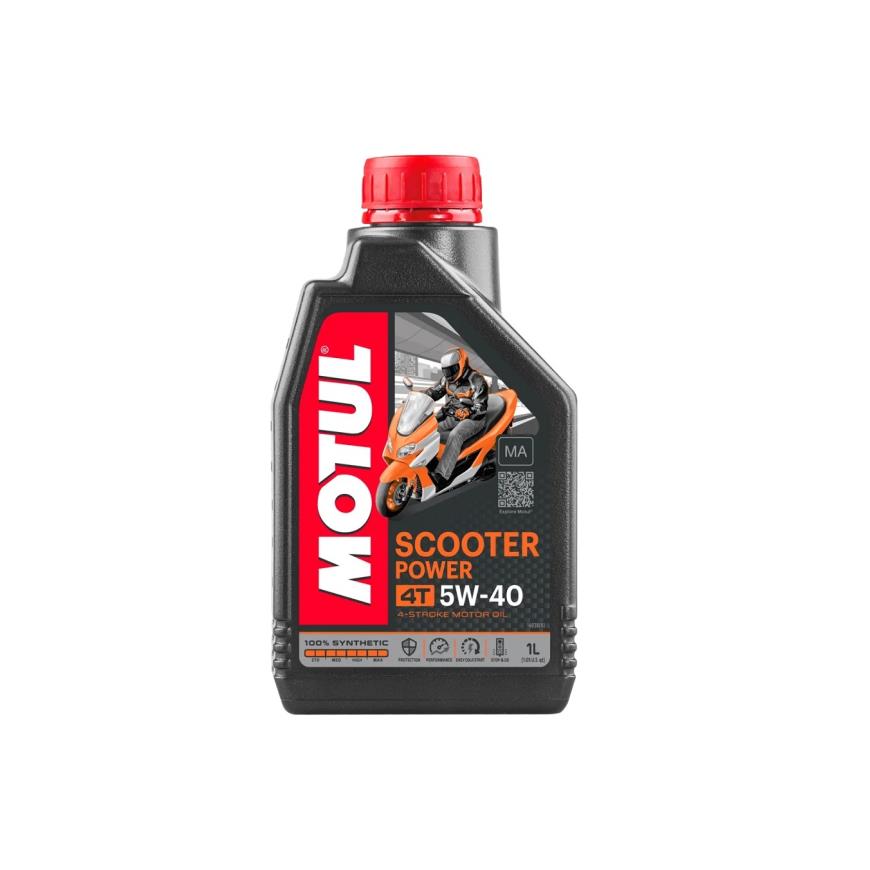 Motul Scooter Power 5W40 4T to w pełni syntetyczny olej silnikowy klasy premium, opracowany specjalnie z myślą o czterosuwowych skuterach i maxi-skuterach użytkowanych głównie w warunkach miejskich, w trybie częstego ruszania i zatrzymywania (start-stop). Zapewnia doskonałą ochronę silnika, płynną pracę układu napędowego oraz komfortową i bezpieczną zmianę biegów.