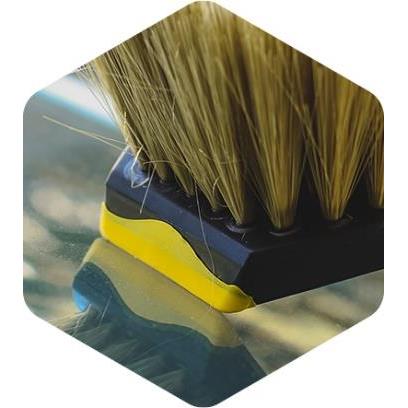 Gęste, miękkie, wytrzymałe, odpowiednio osadzone, poliestrowe włosie skutecznie usuwające zanieczyszczenia z szyb i karoserii, nie rysujące powierzchni – bezpieczne dla lakieru.