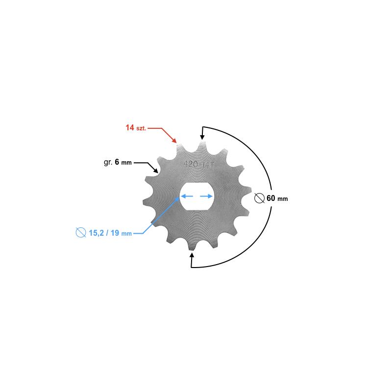 średnica zewnętrzna zębatki: 60 mm