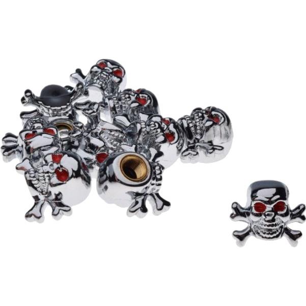 Chromowane nakrętki wentyla typu „czacha z piszczelami” wykonane z trwałego utwardzanego plastiku łączą funkcjonalność z ciekawym, efektownym designem. Idealne do ochrony wentyli i podkreślenia wyglądu felg i opon.