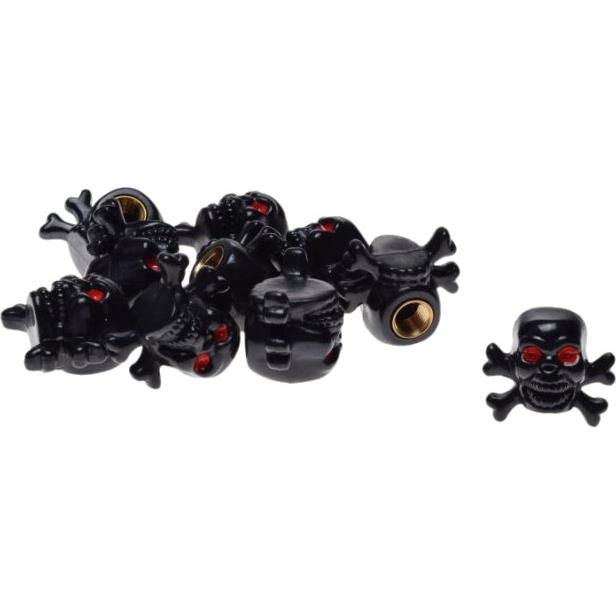 Czarne nakrętki wentyli typu „czacha z piszczelami” wykonane z trwałego utwardzanego plastiku łączą funkcjonalność z eleganckim, minimalistycznym wyglądem. Idealne do ochrony wentyli i estetycznego wykończenia felg i opon.