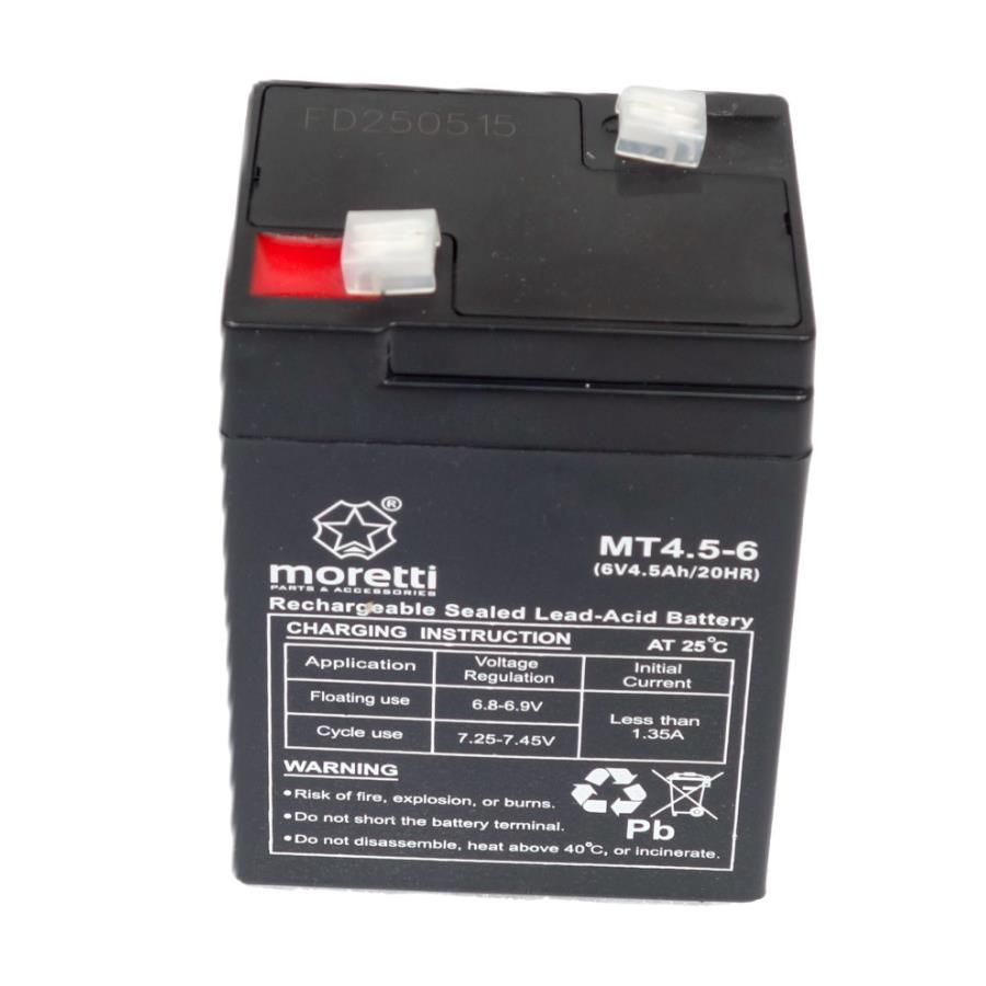 Akumulator Moretti MT4.5-6 to niezawodne źródło zasilania wykonane w technologii AGM VRLA. Jest bezobsługowy, szczelny i odporny na wycieki, co zapewnia bezpieczną oraz długotrwałą pracę w różnych urządzeniach.