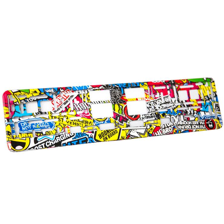 Ramka na tablicę rejestracyjną z hydrografiką w stylu "Stickerbomb" to idealny wybór dla osób, które lubią mocny, wyrazisty styl i chcą, by ich auto wyróżniało się na drodze.