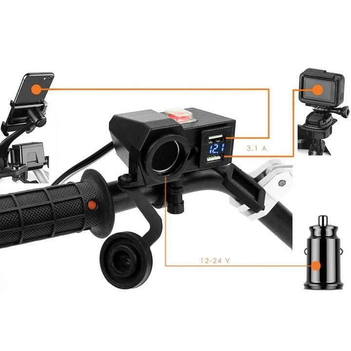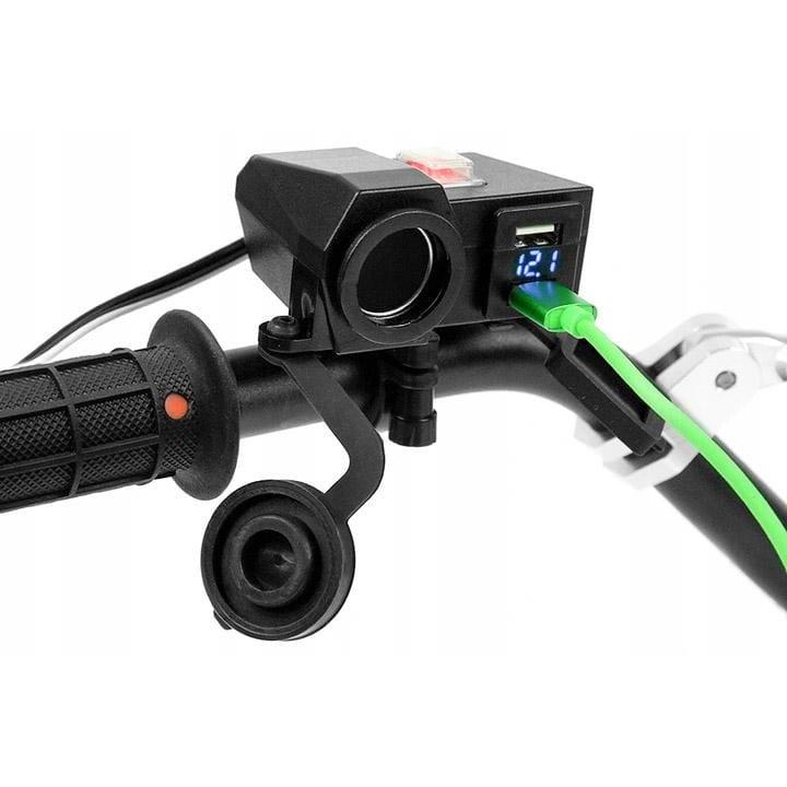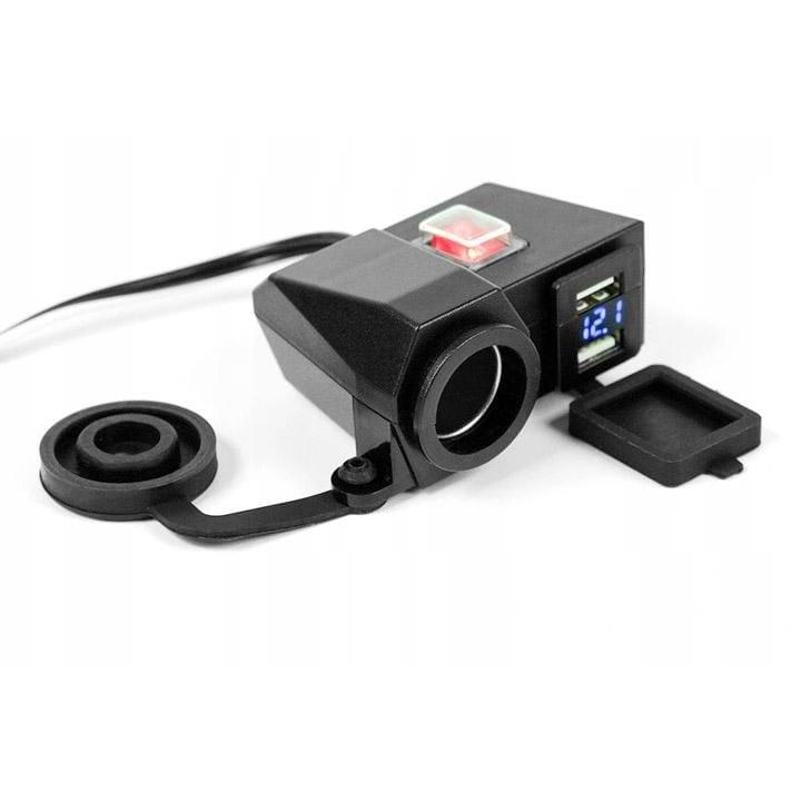Gniazdo zapalniczki + Ładowarka motocyklowa 2xUSB + woltomierz eXtremestyle MUS06 – uniwersalne, wodoodporne gniazdo z funkcją szybkiego ładowania trzech urządzeń jednocześnie.