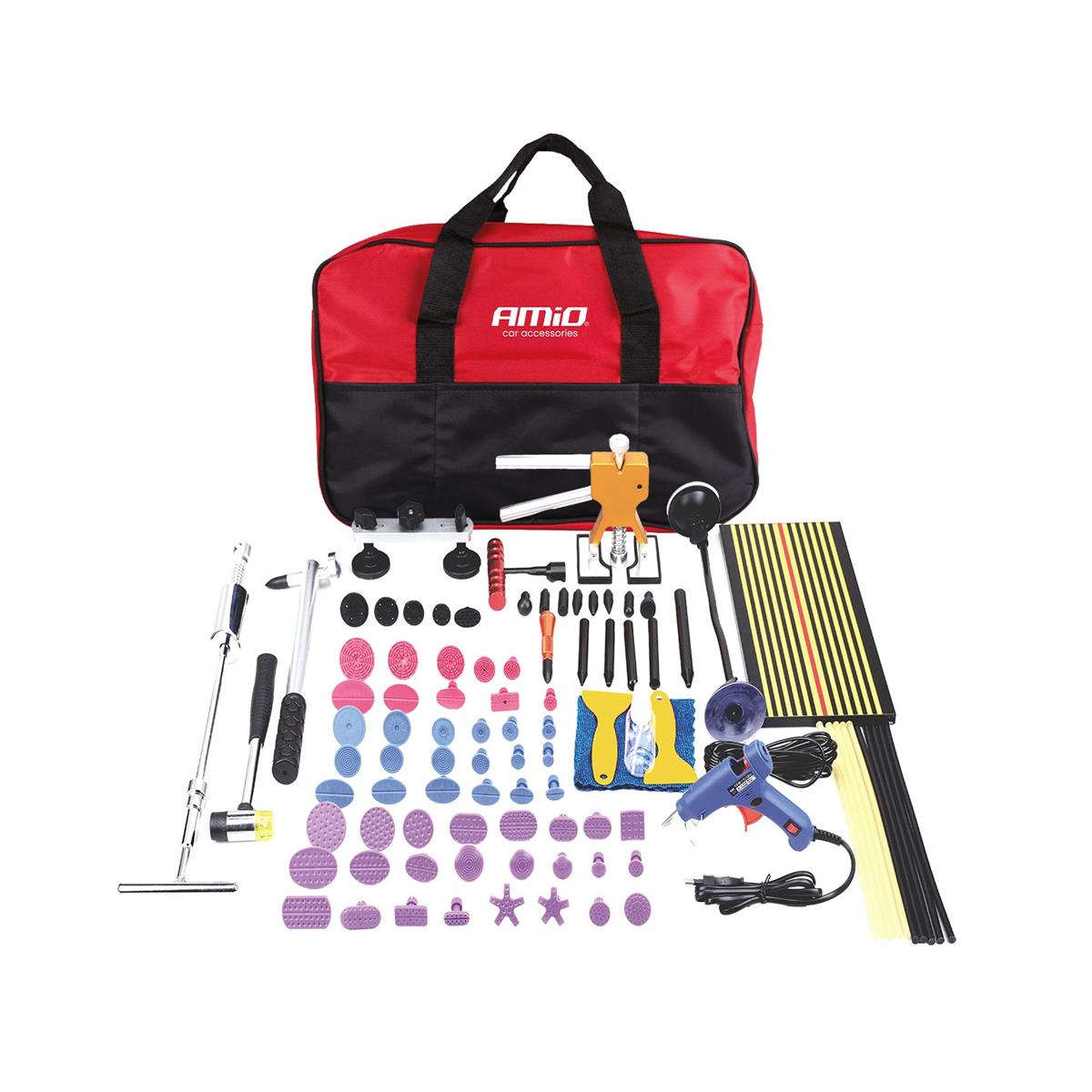 Duży zestaw naprawczy PDR marki AMIO to kompletny, profesjonalny pakiet narzędzi przeznaczony do bezinwazyjnego usuwania wgnieceń karoserii metodą Paintless Dent Repair - bez konieczności szpachlowania czy lakierowania, co znacząco skraca czas naprawy i redukuje koszty.