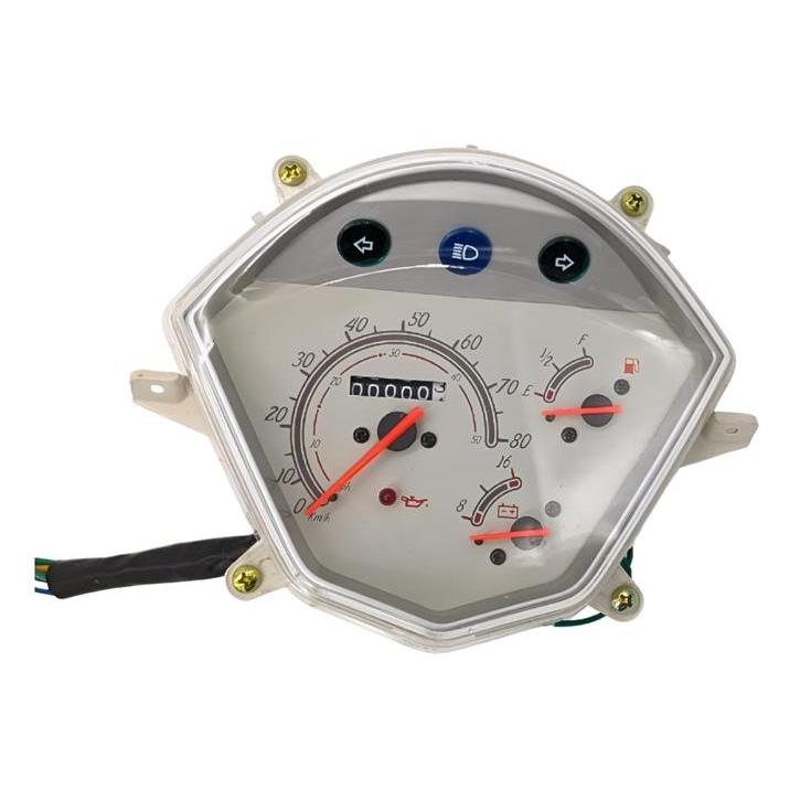 Kompletny zegar przeznaczony do skuterów Romet Blu City oraz Longjia Estate 50, odpowiadający za wyświetlanie prędkości jazdy i podstawowych parametrów pracy pojazdu.
