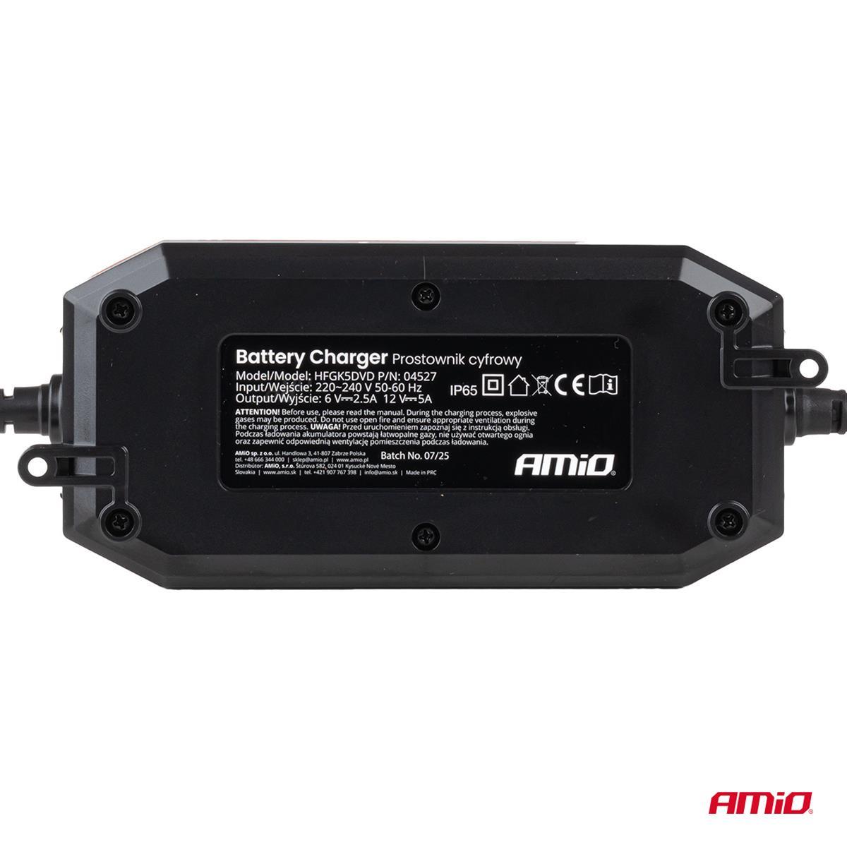 Cyfrowy prostownik AMiO PRO to zaawansowane urządzenie przeznaczone do ładowania akumulatorów AGM, GEL oraz LiFePo4 (LFP) . Dzięki wysokiemu prądowi ładowania 5 A i precyzyjnemu cyfrowemu sterowaniu, zapewnia szybkie, bezpieczne i efektywne ładowanie akumulatorów o napięciu 6V lub 12V , zarówno w pojazdach osobowych, motocyklach, jak i w sprzęcie profesjonalnym. Zaawansowana ładowarka cyfrowa z dedykowanymi programami do ładowania poszczególnych typów akumulatorów. Funkcja podtrzymywania napięcia i automatyczna regeneracja zasiarczonych akumulatorów. Możliwość przykręcenia do ściany, posiada normę szczelności IP65 oraz szybkozłączkę z dodatkowym przewodem o zaciskach oczkowych. Optymalna do ładowania akumulatorów motocyklowych o dużych pojemnościach oraz akumulatorów samochodowych z silnikami benzynowymi i dieslami o małej pojemności.