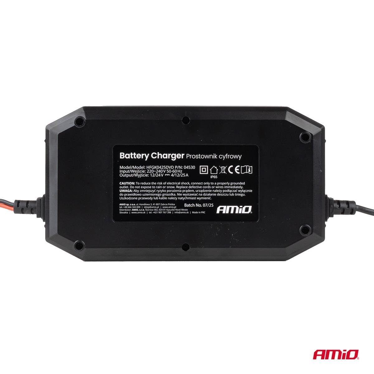 Prostownik AMiO cyfrowy PRO 12/24V MAX 25A z funkcją rozruchu to urządzenie dla wymagających użytkowników, gwarantujące szybkie, bezpieczne i profesjonalne ładowanie oraz niezawodne wspomaganie rozruchu w każdej sytuacji, idealne do samochodów osobowych, ciężarowych, maszyn rolniczych i sprzętu profesjonalnego.