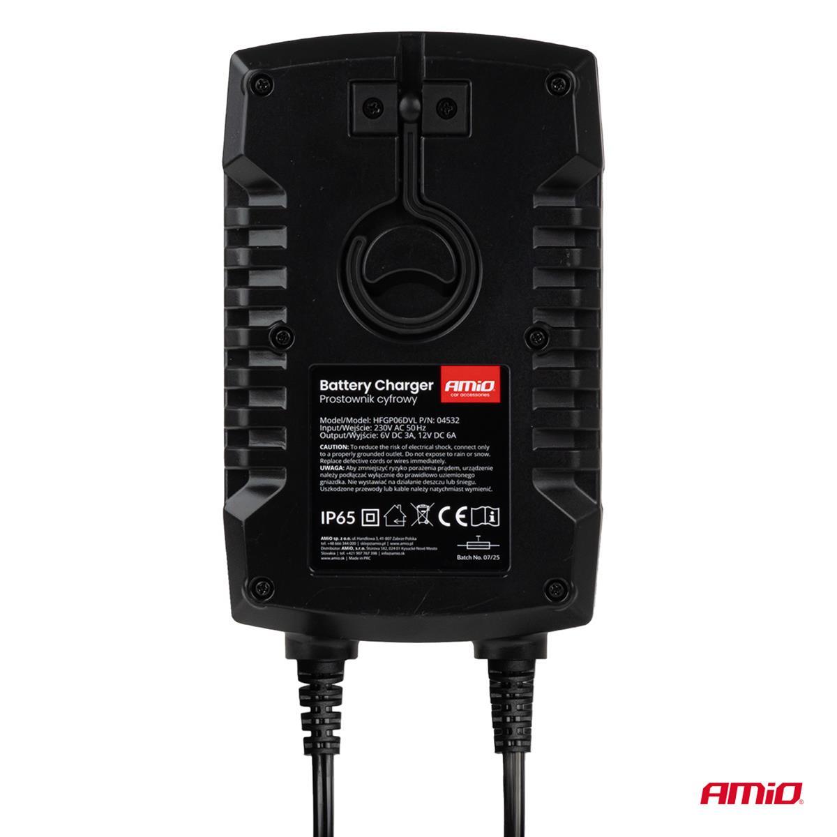 Cyfrowy prostownik AMiO PRO HOOK to nowoczesne urządzenie przeznaczone do ładowania akumulatorów AGM, GEL oraz LiFePo4 (LFP). Dzięki maksymalnemu prądowi ładowania 6 A i obsłudze napięć 6V i 12V, zapewnia szybkie, bezpieczne i precyzyjne uzupełnianie energii akumulatorów w pojazdach osobowych, motocyklach, łodziach i małym sprzęcie profesjonalnym. Ładowarka z funkcją podtrzymywania napięcia z wbudowanym hakiem do podwieszenia pod maską. Posiada szybkozłączkę oraz dodatkowe konektory oczkowe w zestawie. Optymalna do ładowania akumulatorów motocyklowych i samochodów osobowych z silnikami benzynowymi oraz diesla o małej pojemności, dodatkowo posiada dedykowaną funkcję ładowania akumulatorów LFP.