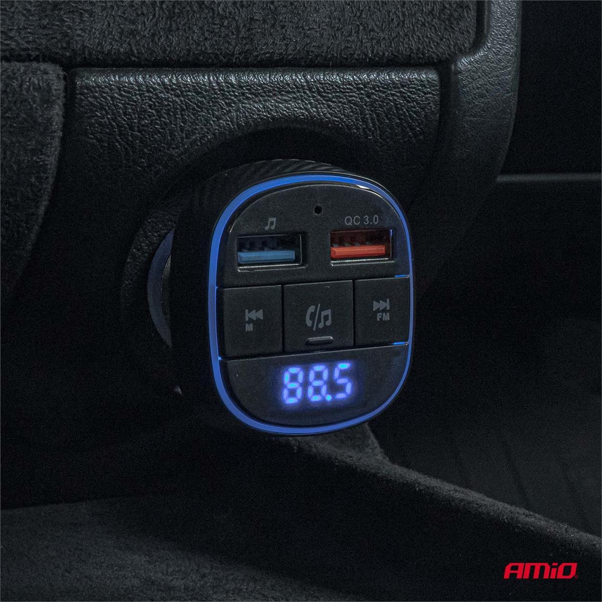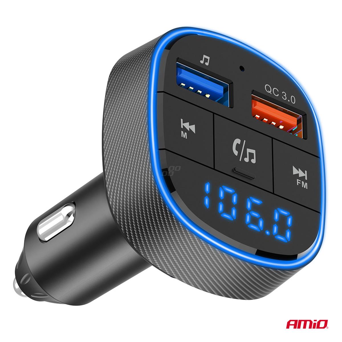 Transmiter samochodowy FM AMiO 2× USB-A to praktyczne rozwiązanie umożliwiające odtwarzanie muzyki oraz prowadzenie rozmów telefonicznych w pojazdach wyposażonych w klasyczne radio bez modułu Bluetooth.