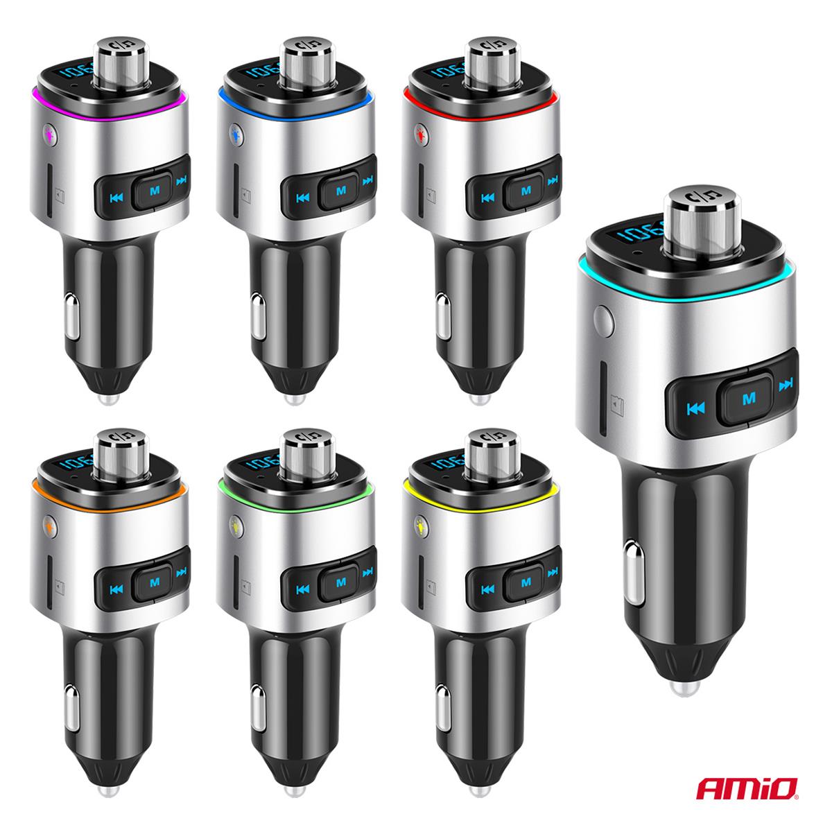 Transmiter samochodowy FM 2×USB-A microSD 12V–24V AMIO to praktyczne, wielofunkcyjne urządzenie z modułem Bluetooth i funkcją zestawu głośnomówiącego, umożliwiające odtwarzanie muzyki z różnych źródeł oraz prowadzenie rozmów w trybie Hands-free.