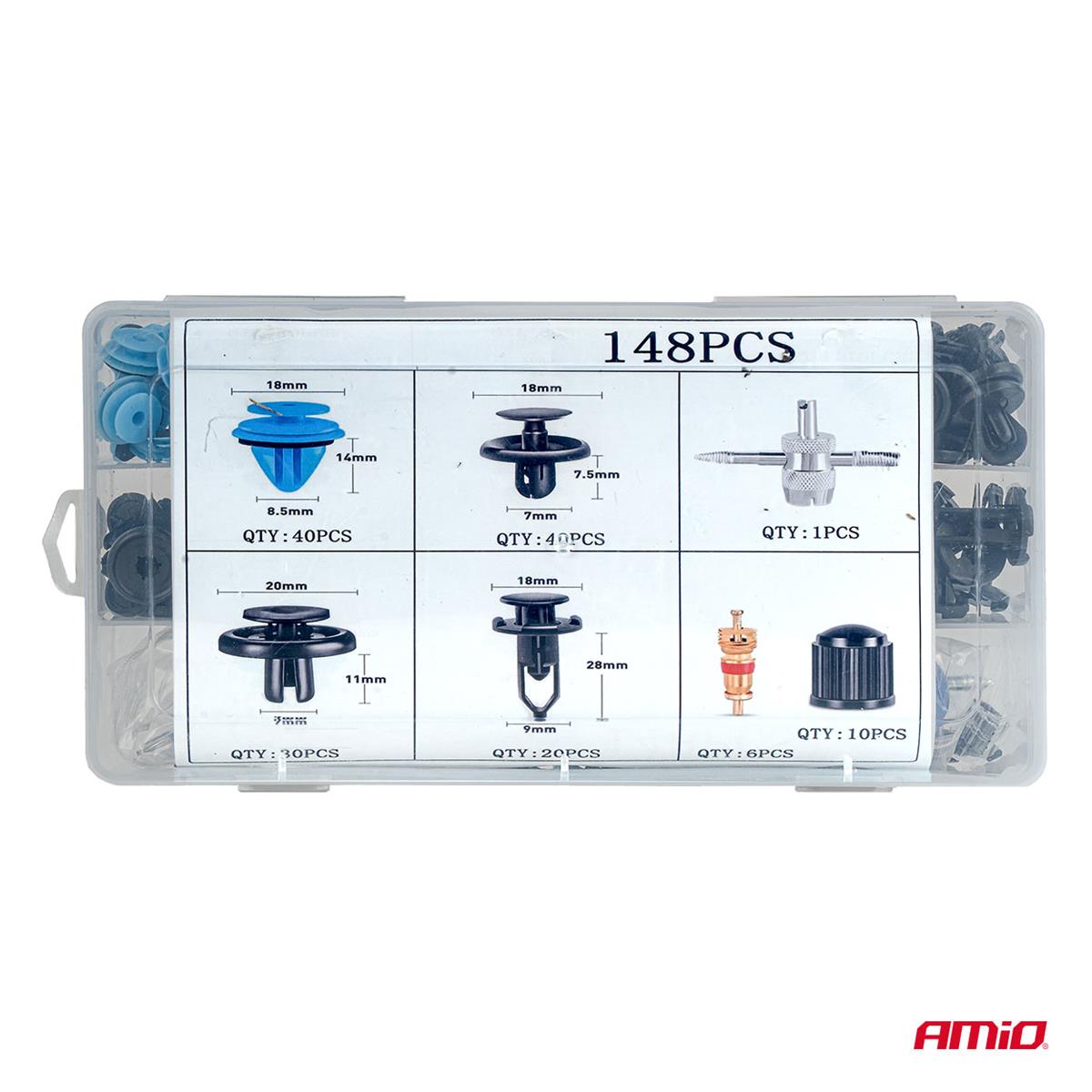 Ilość elementów: 148 (spinki i kołki + narzędzia)