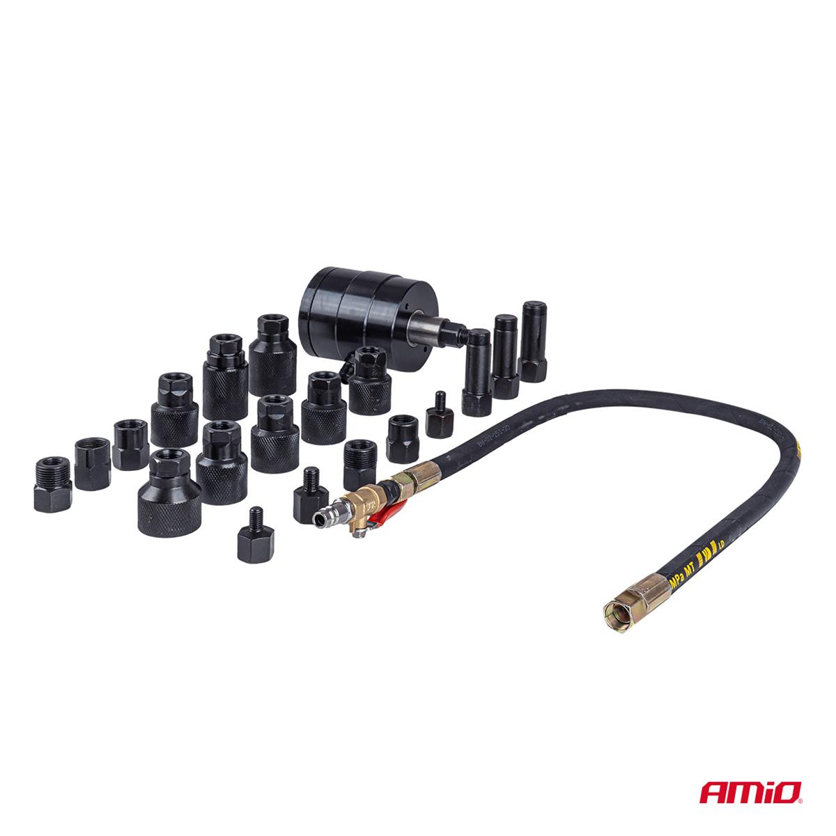 Zestaw 21-elementowy: zawiera adaptery i akcesoria zapewniające szeroką kompatybilność z różnymi systemami wtryskowymi
