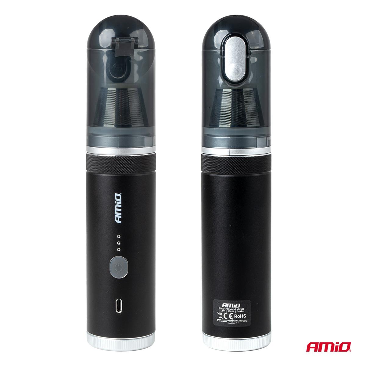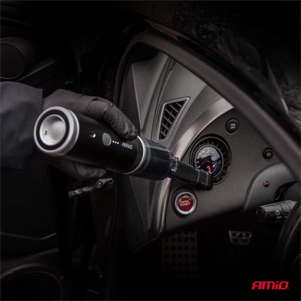 Nowoczesny bezprzewodowy odkurzacz samochodowy z funkcją pompki, wyposażony w silnik bezszczotkowy o mocy 100 W i siłę ssania 20 kPa, umożliwiający skuteczne usuwanie kurzu i zanieczyszczeń oraz szybkie pompowanie.