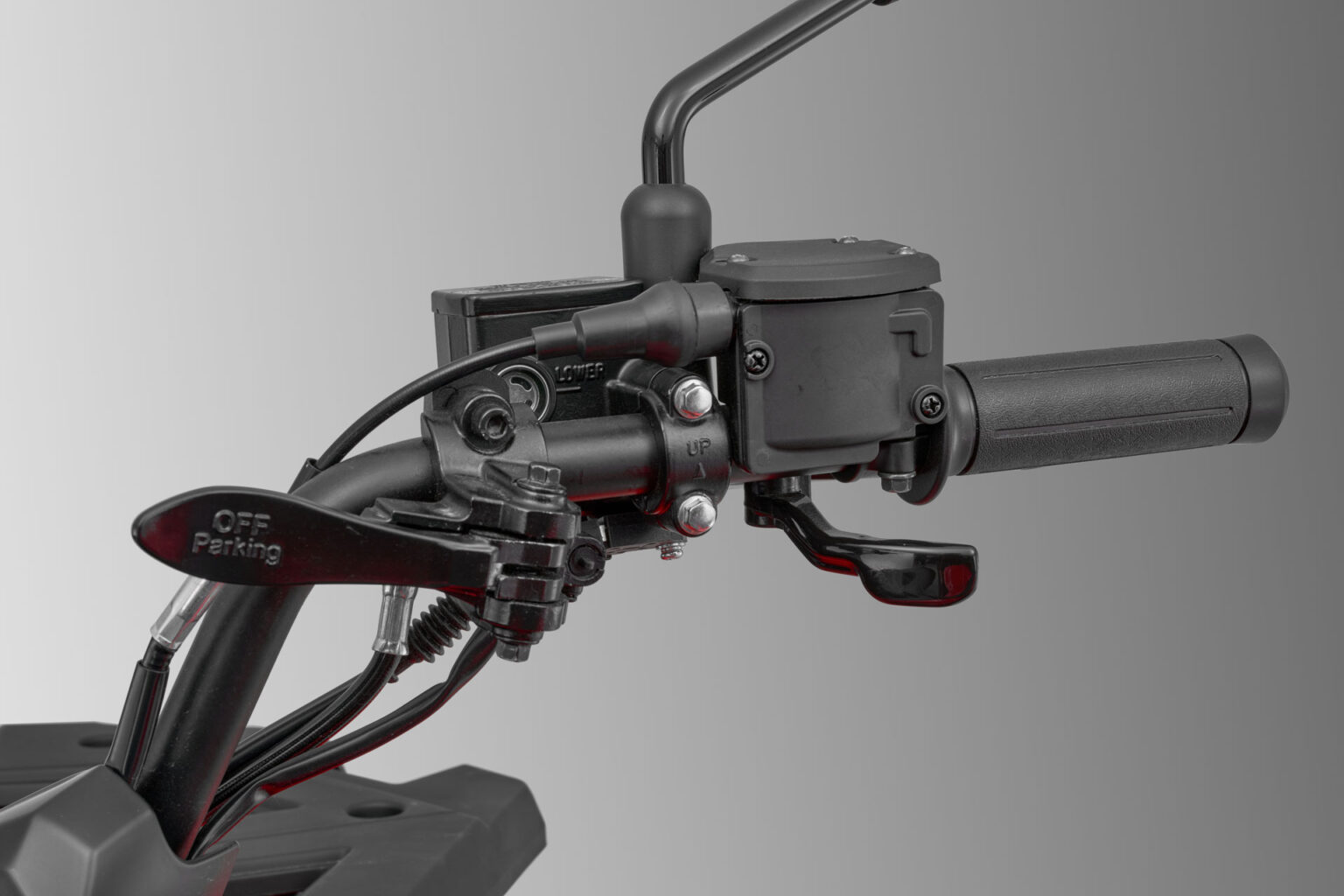 Ten model posiada również hamulec ręczny sterowany z prawej strony kierownicy oraz przełącznik do sterowania ekranem TFT z lewej strony.